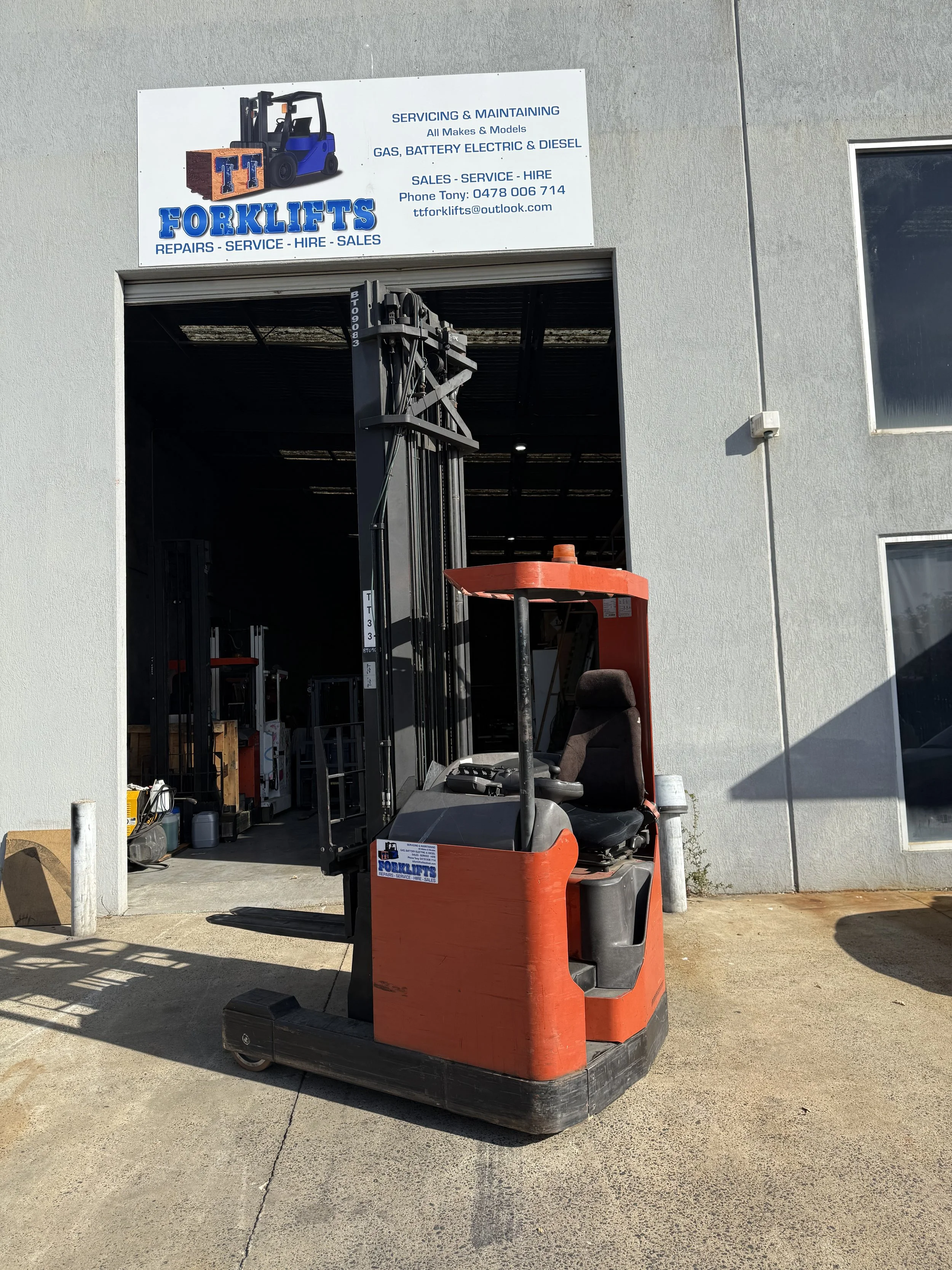 This BT high reach sit down forklift is ready for use. great battery condition.